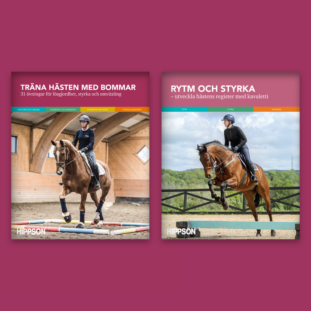 "Träna hästen med bommar" kom ut 2019 och innehåller 31 inspirerande bomövningar från vårt sajt- och tidningsarkiv. Övningarna är fördelade på 20 separata artiklar som vi vet har kommit till stor praktisk användning runt om i ridhusen genom åren.